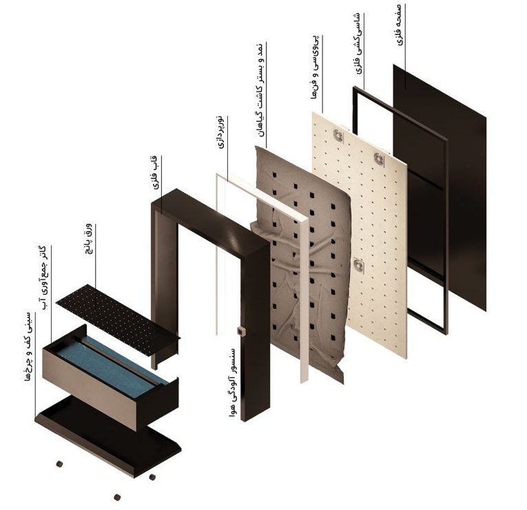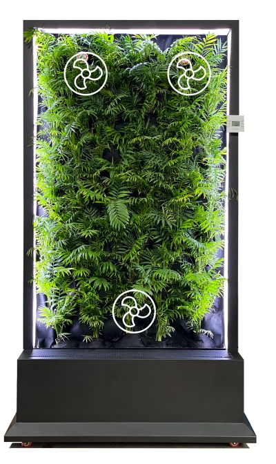 The fans integrated into the green wall draw polluted air from the environment and channel it inward by passing the air through plants, felt layers, and fabric filters. During this process, fine particulate pollutants (PM2.5 and PM10) are removed from the air, and clean air is released back into the space. The lower fan creates suction to capture polluted indoor air, passes it through HEPA filters, and directs it into the system.