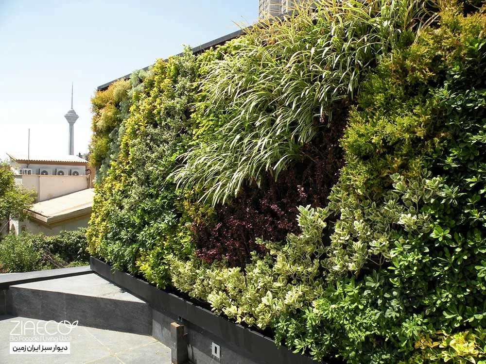 دیوار سبز ایران زمین با ابعاد 4.4 متر مربعی خود، هرچند کوچک اما بسیار تاثیرگذار است. طراحی آن به گونهای انجام شده که با معماری ورودی ساختمان هماهنگ باشد و با انتخاب گیاهان متنوع، حس طراوت و زیبایی به فضای ورودی القا میکند. استفاده از سیستم هیدروپونیک باعث شده تا گیاهان به صورت بهینه تغذیه شوند و رشد مطلوبی داشته باشند.
