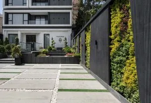 امروزه ورود ما به داخل ساختمان و محل زندگی مان غالبا با خودرو است و فضاهای باز ساختمان دیده نمی شود. برای دیده شدن باید ارتفاع را اضافه کرد و یا در جداره های عمودی اقداماتی را انجام داد که مخاطب هنگامی که سوار بر ماشین خود هست بتواند نظری بر انها بکند و لذتی ببرد. نکته دیگر هم که قابل توجه است دیگر مساحتی از عرصه زمین باقی نمانده که بتوان آن را به فضای سبز فواره آب و تخت اختصاص داد تا حد امکان سطح زمین را می سازند و یا به ورودی رمپ و یا پارکینگ اختصاص می دهند انگار که ماشین از خود انسان هم مهمتر است. گاها به شکلی است که مساحت پارکینگ یک خودرو بیشتر از مساحت اتاق خواب یک نفر است. در این اهمیت دادن های متفاوت، جداره های عمودی زیادی شکل می گیرد که می تواند مکانی برای استقرار سبزینگی و یا ایجاد حس حیاط باشد.
