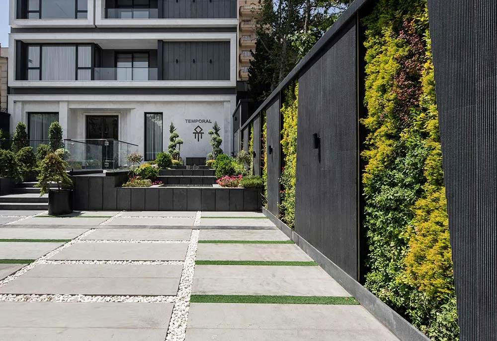 تمپورال جزو محدود ساختمان هایی هست که علاوه بر ایجاد فضای سبز در فضای ورودی سطوح عمودی خود را هم برای استقرار دیوار سبز در نظر گرفته است این دیوار سبز ها از دید عابر در خارج ساختمان هم دیده می شود. غالبا مخاطبین لحظاتی مقابل آن می ایستند و با نگاه به گیاهان و با شنیدن صدای آب از آن لذت می برند .
