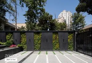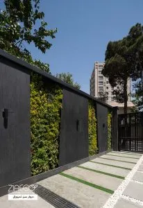 این دیوار سبز با توجه به طراحی شرکت معماری رحمانی در داخل دیوار جدا کننده اجرا شده است. این جزییات اجرایی موجب شده که هیچگونه از جزیییات اجرایی دیوار سبز دیده نشود و یک صفحه دیده شود.