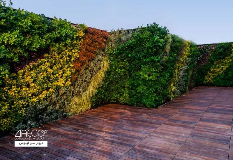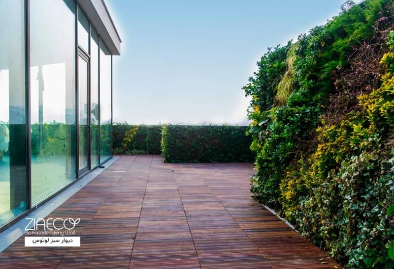 • پروژه دیوار سبز لوتوس-دیوار سبز شادی که در تهران – زعفرانیه اجرا شده است، توسط شرکت سرمایه‌گذاری و ساختمانی لوتوس سفارش داده و توسط ضیااکو طراحی و اجرا گردید. این پروژه شامل دیوار سبز هیدروپونیک با ابعاد 99 متر مربع برای بخش بیرونی و 14 متر مربع برای فضای داخلی است. هدف این طراحی ایجاد یک محیط اداری با فضای سبز زیبا و بهبود کیفیت هوا و تجربه کاربری برای کارکنان و مشتریان است.
