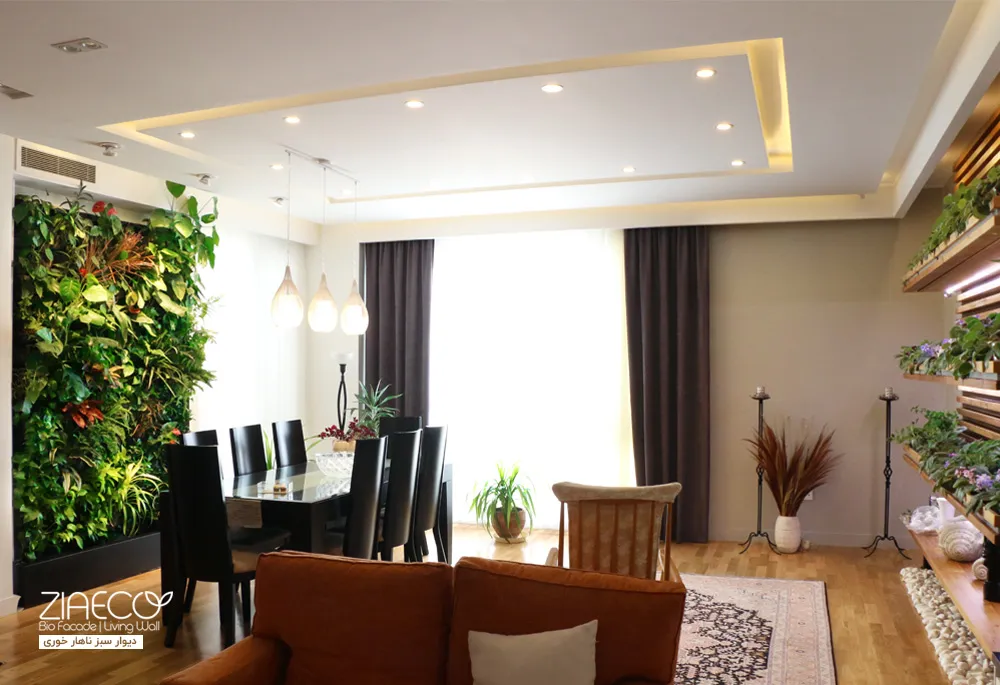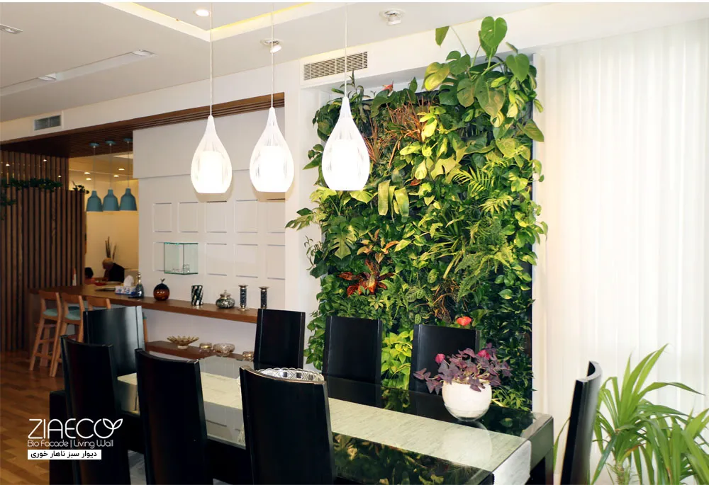 • زیبایی و طراوت: ایجاد فضای سبز در داخل خانه با کمک دیوار سبز هیدروپونیک به ناهارخوری ظاهری تازه و طبیعی می‌دهد.